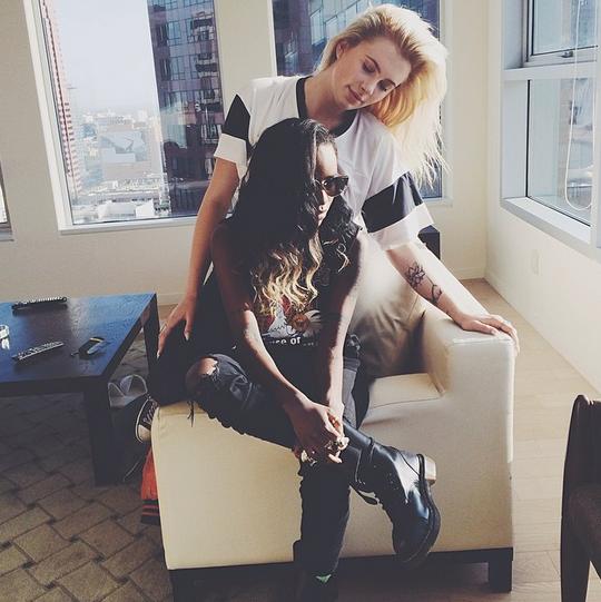 La modelo y actriz Ireland Baldwin, hija de los actores -actualmente divorciados- Kim Basinger y Alec Baldwin está en el punto de mira lésbico estos días tras haber colgado en su cuenta de Twitter e Instagram varias fotos en las que aparece junto a la rapera Angel Haze en plan más que cariñoso. Oficialmente no hay comentarios sobre su posible relación y hasta hace dos meses Ireland estaba saliendo con Slater Trout, pero una imagen y en este caso varias, valen más que mil declaraciones. Así que, de momento, pongámoslas en la lista se «sospechosas habituales»