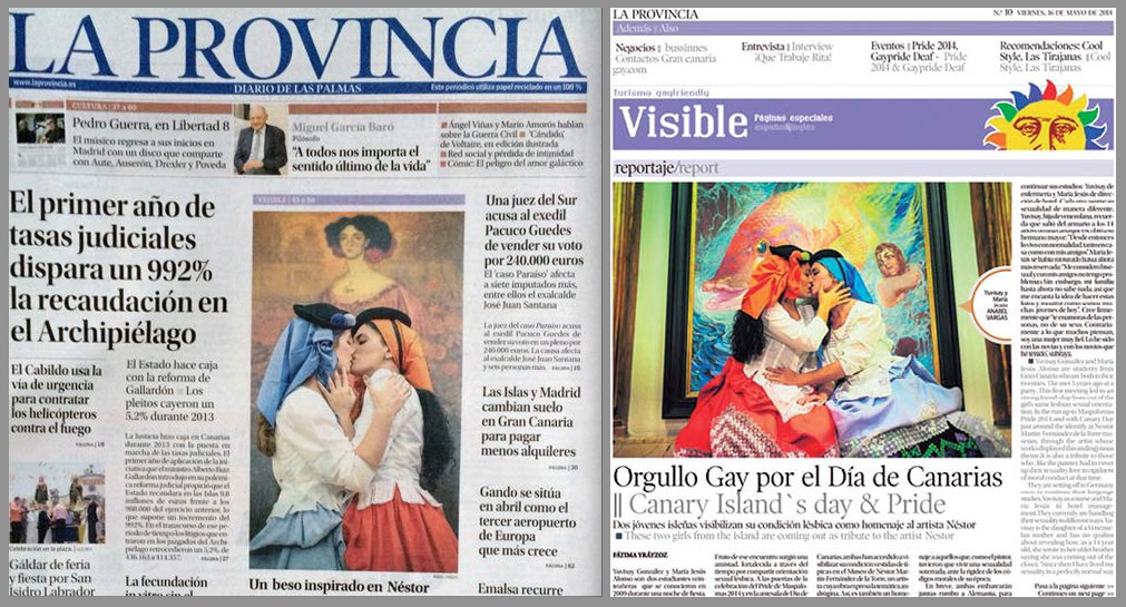 La pareja fue portada del suplemento Visible, de La Provincia, el diario de Las Palmas. Y para la sesión, a cargo de la fotógrafa Anabel Vargas, escogieron nada más y nada menos que el Museo Néstor Martín-Fernández de la Torre, creador de los trajes regionales de la isla y símbolo de la cultura homosexual por su orientación y sus cuadros de estética andrógina.