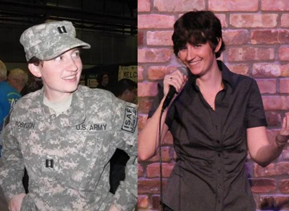 Ella es una de las chicas de la pareja de lesbianas que sale al principio del vídeo. Se llama Katherine Robinson y, en Estados Unidos, la conocen como «Capitana Katie» por ser veterana de la guerra de Iraq, entre otras muchas cosas.