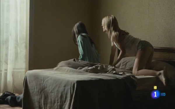 Aunque ‘El ministerio del tiempo’ se concibió como una serie de una sola temporada, la cadena ya ha confirmado que va a haber una segunda entrega dado el éxito de la primera. En la trama, que corre hacia delante y hacia atrás en el tiempo, Cayetana Guillén Cuervo interpreta a Irene, una aguerrida funcionaria del ministerio reclutada en la década de 1960, casada en 2015 con Nuria, una doctora, y encaprichada en 1880 con Amelia Folch, la primera mujer que consiguió ir a la universidad en España. La primavera pasada ya os comentamos el lesbibeso que se dieron Irene y Amelia, personaje interpretado por Aura Garrido. Y ahora os dejamos con algunas instantáneas de los momentos de cama de Irene y Nuria, su mujer en el presente.